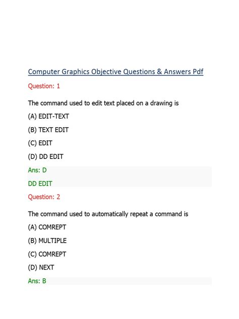 Read Online Computer Graphics Objective Questions Answers Epub