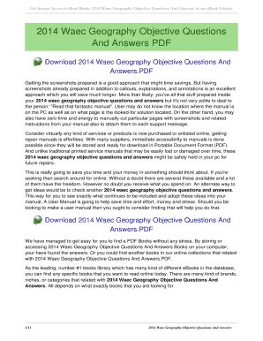 Download Geography Waec 2014 Answers Doc online is a convenient and frugal way to read Geography Waec 2014 Answers you love right from the comfort of your own home. Yes, there sites where you can get Doc "for free" but the ones listed below are clean from viruses and completely legal to use.