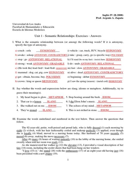 Download Unit 1 Semantic Relation Exercises Answers Doc